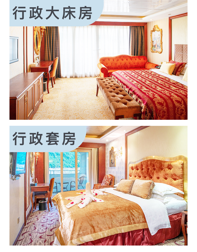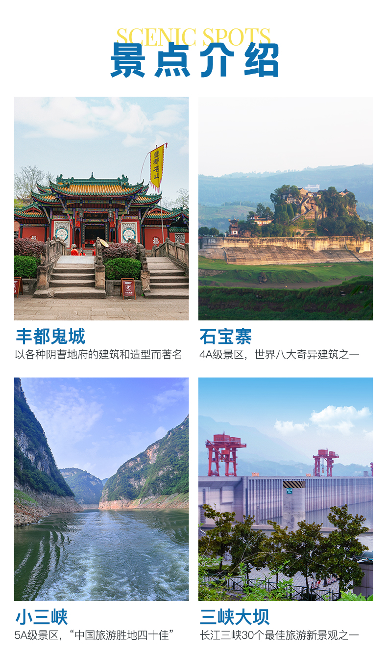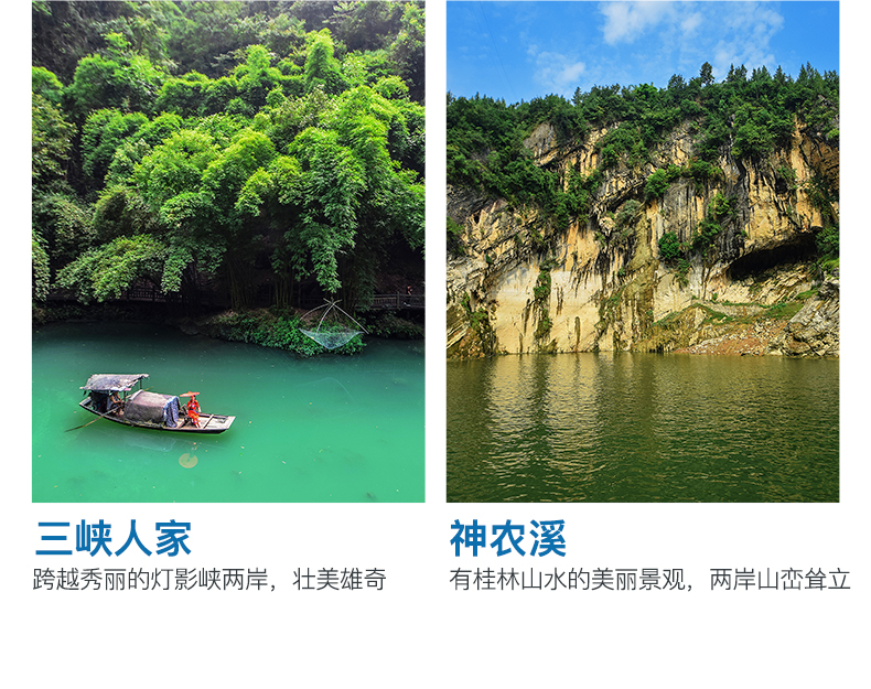 4、不含自费景点:三峡人家 290 元/人或屈原故里 290 元/人、升船机 290 元/人、白帝城290 元/人、归来三峡 290 元/人、石宝寨 220 元/人、双桂山、纤夫拉纤漂流(自费景点价格以船方为准,船方选择性停靠,不参加的客人在船上休息,不能下船)。
