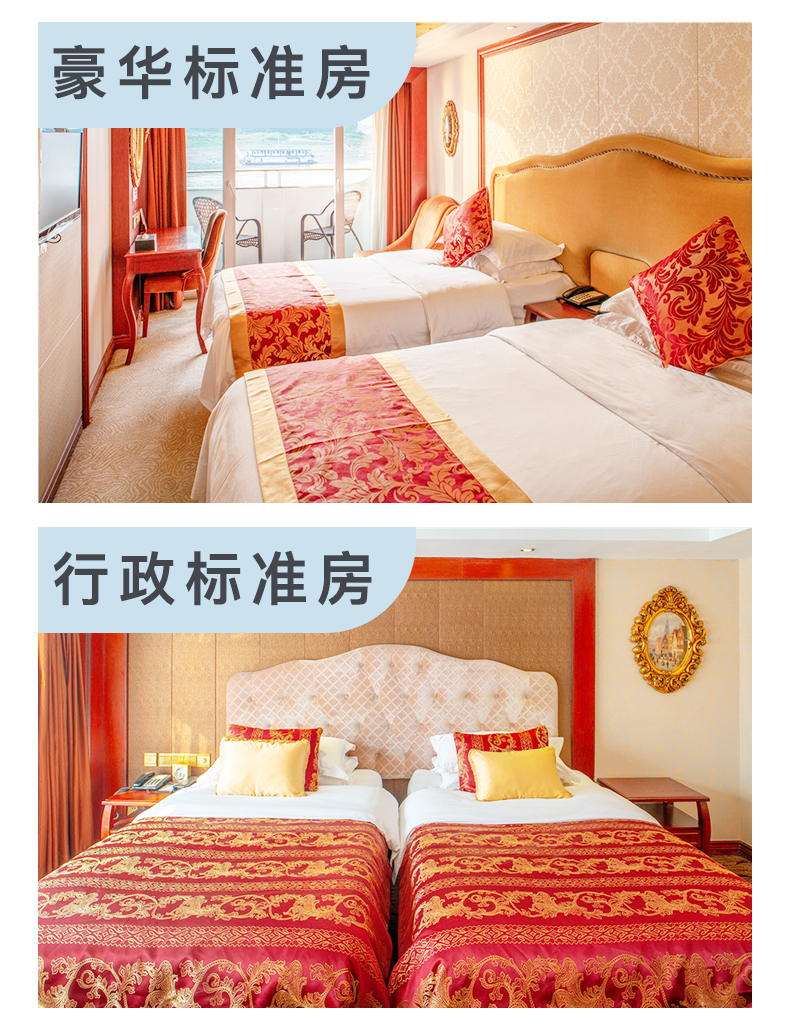 2、住宿:此船票入住标准为游船2楼标准间1个人用1个床位。