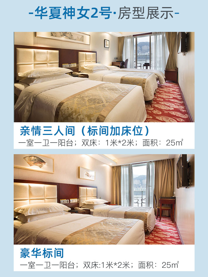 1、交通:船:华夏神女游轮;车:景区用车为具有旅游资质的空调旅游车(只保证1人1位 不保证车型)。