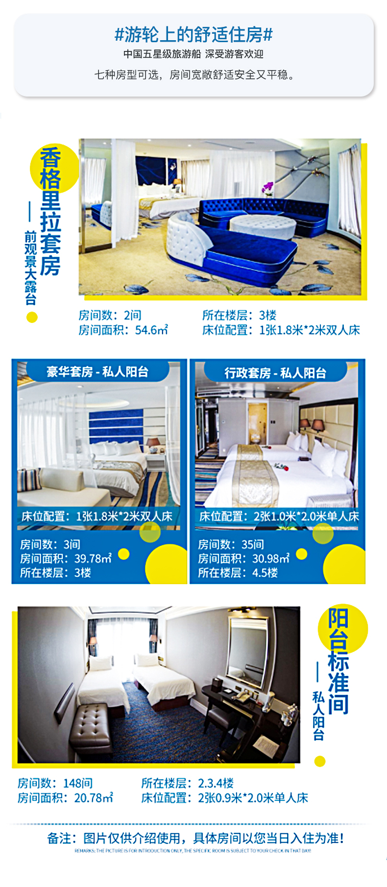 2、住宿标准:此船票入住标准为预定时相应床位。