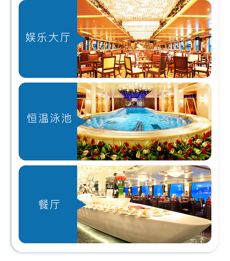 4、儿童:2岁(不含2岁)以下儿童收取10%的船票费(含餐费)。