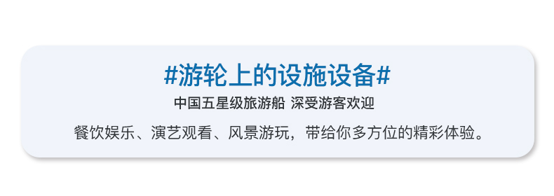 2、在船上您需要注意人身安全和财物安全。上下船不要拥挤、注意脚下,小心滑倒。船行江中,应该十分注意坠江事故的发生,特别是小孩。离开房间时(到餐厅用餐或上岸游览),请将现金和贵重物品(如相机等)随身携带,同时锁好房门,防有各类小偷混迹于船上。