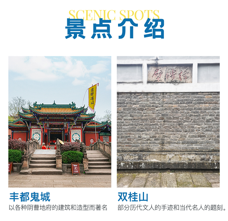 09:00-12:00 停靠丰都码头,在船自由活动,可自费游览【丰都鬼城】(自费290元/人)